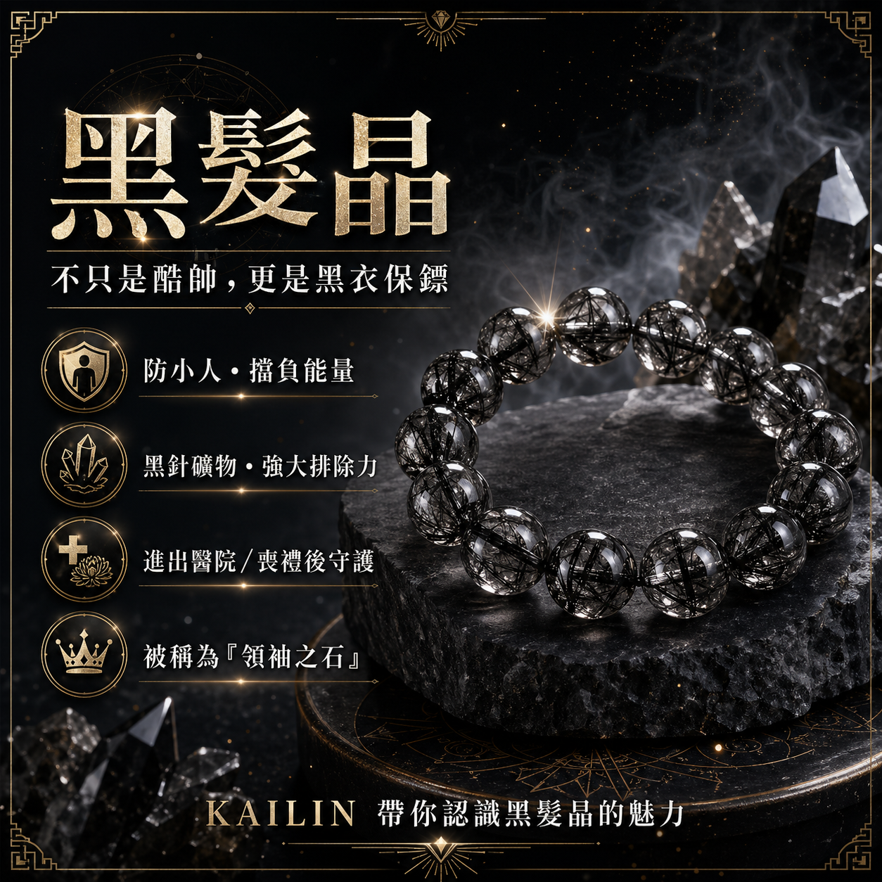 排除負能量與病氣: 如果你常覺得提不起勁、甚至莫名感到負面,黑髮晶能幫你把體內的「雜質」排出去,這也是為什麼很多人進出醫院會戴著它。