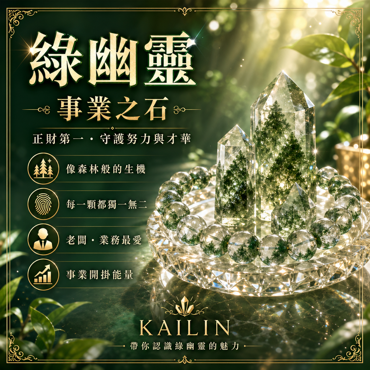 綠幽靈的能量非常積極且向上,它的招財跟偏財(如賭博、樂透)不同,它更強調「一分耕耘、一分收穫」