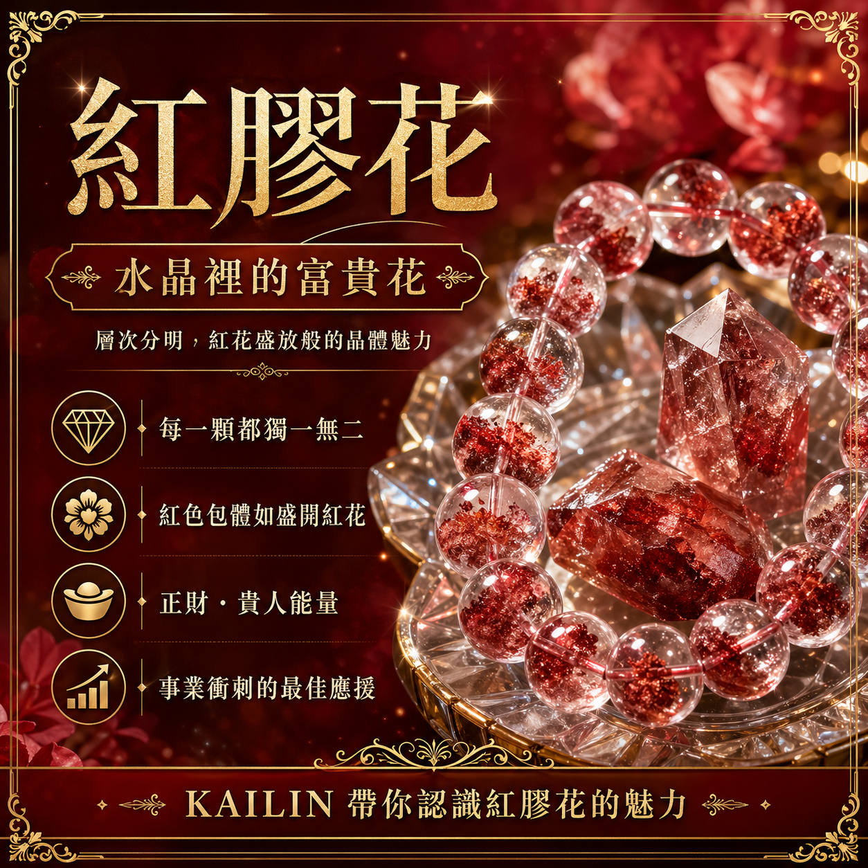 招來真正的「貴人」: 不同於粉晶偏向人緣,紅膠花的紅代表「名聲與貴人」。它能幫你吸引到能在事業上拉你一把的關鍵人物。