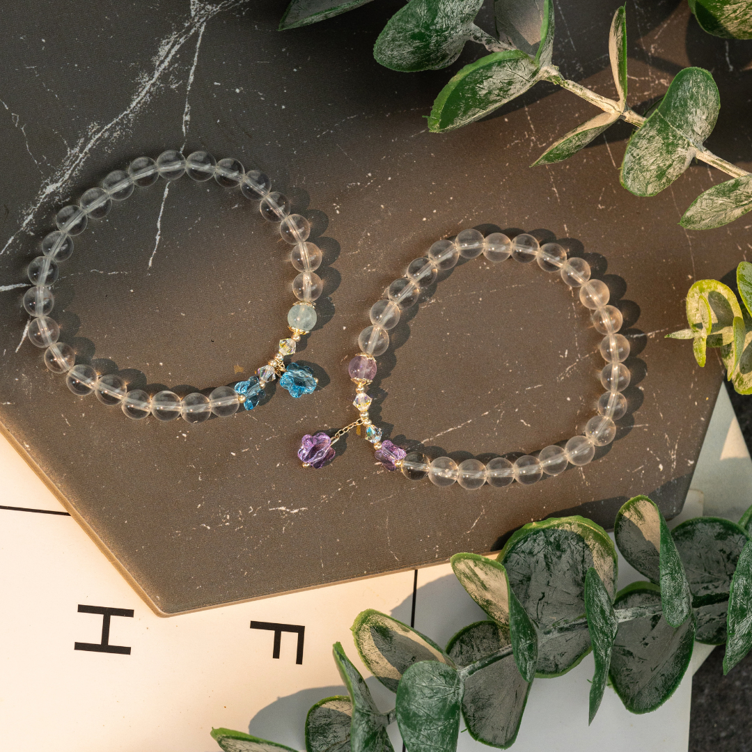 水晶組成:白水晶+海藍寶 及 白水晶+紫水晶 二款