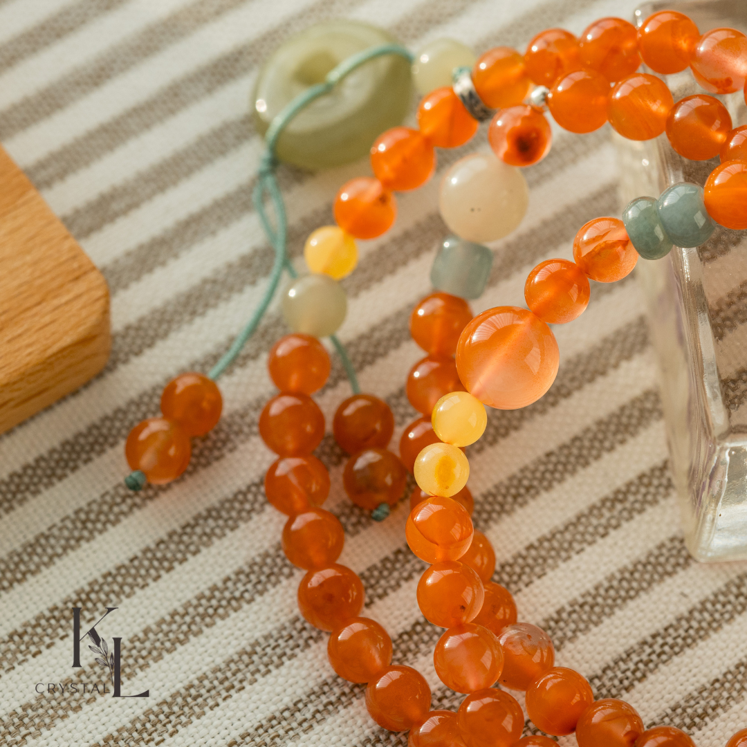 當妳戴著 南紅瑪瑙、翡翠 與 蜜蠟 創作時,會發現能量流動明顯變得順暢