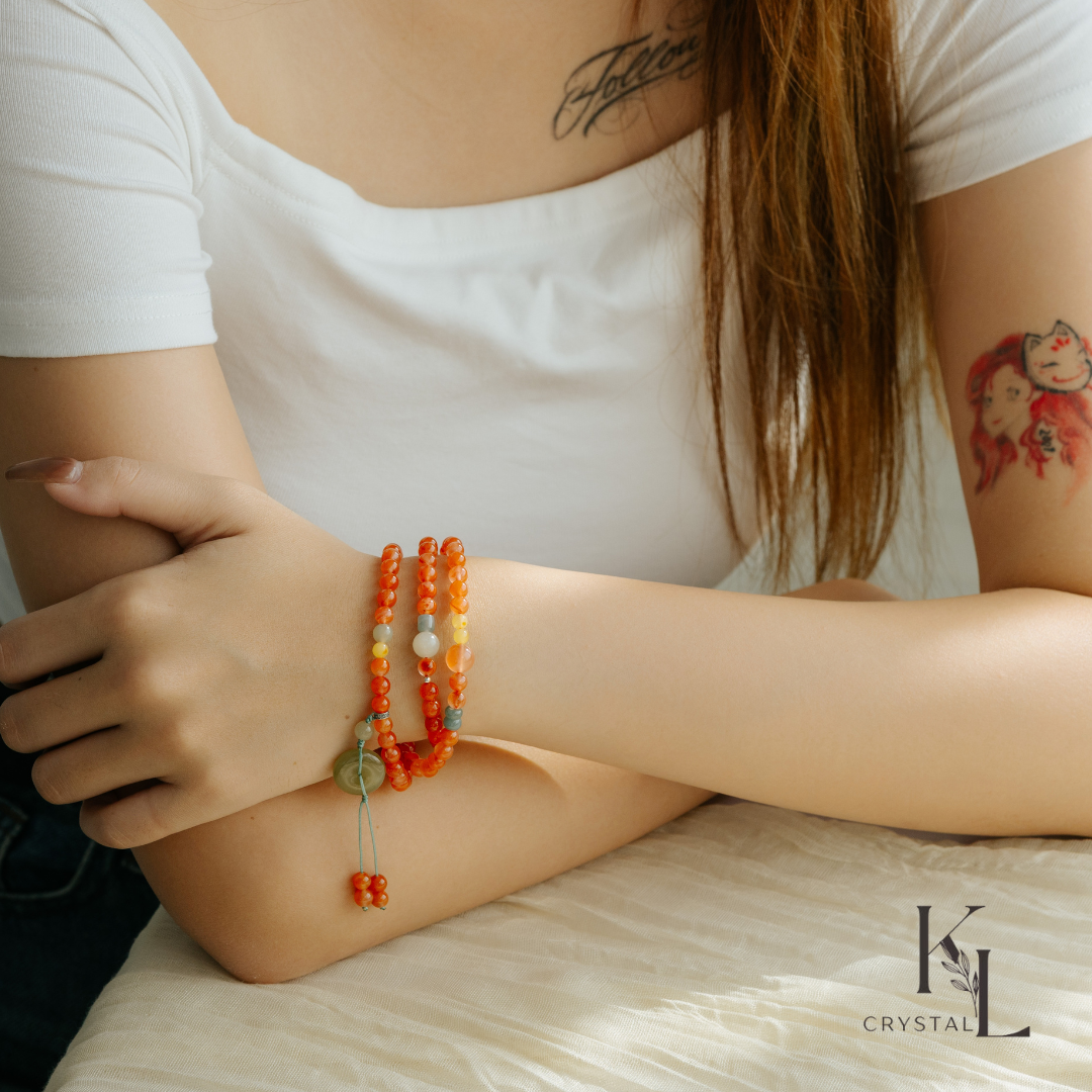 這類族群戴上 南紅瑪瑙、翡翠 與 蜜蠟,能讓妳在處理難題時既有 南紅瑪瑙 的衝勁,也有 翡翠 的包容,以及 蜜蠟 的靈活。