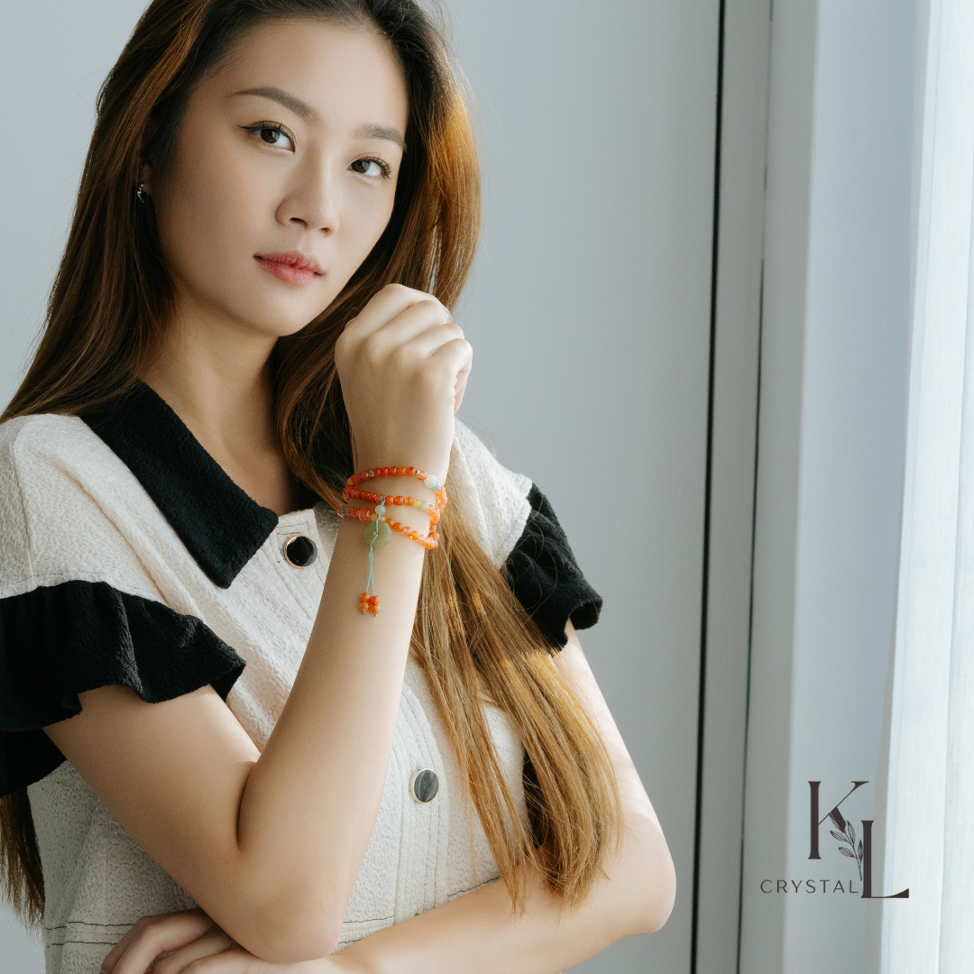 這款含有大量南紅瑪瑙的設計,能讓妳在工作或決策時更具膽識,讓南紅瑪瑙的水晶功效幫妳在關鍵時刻不手軟。