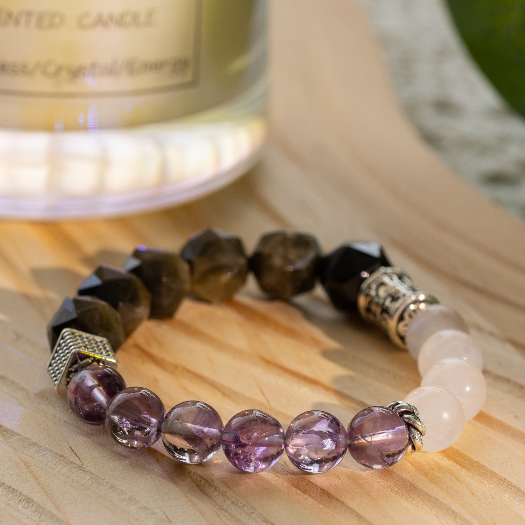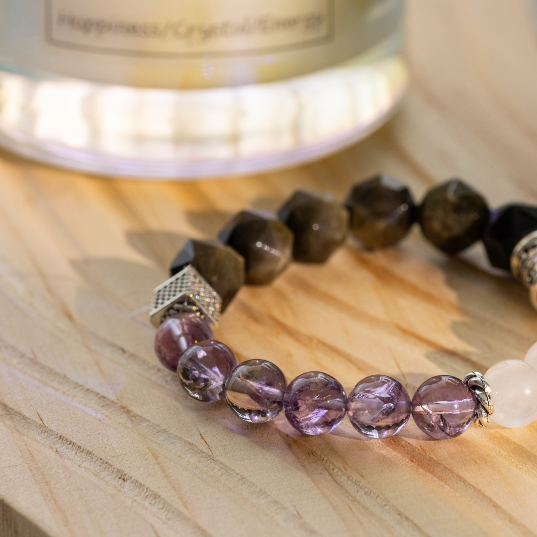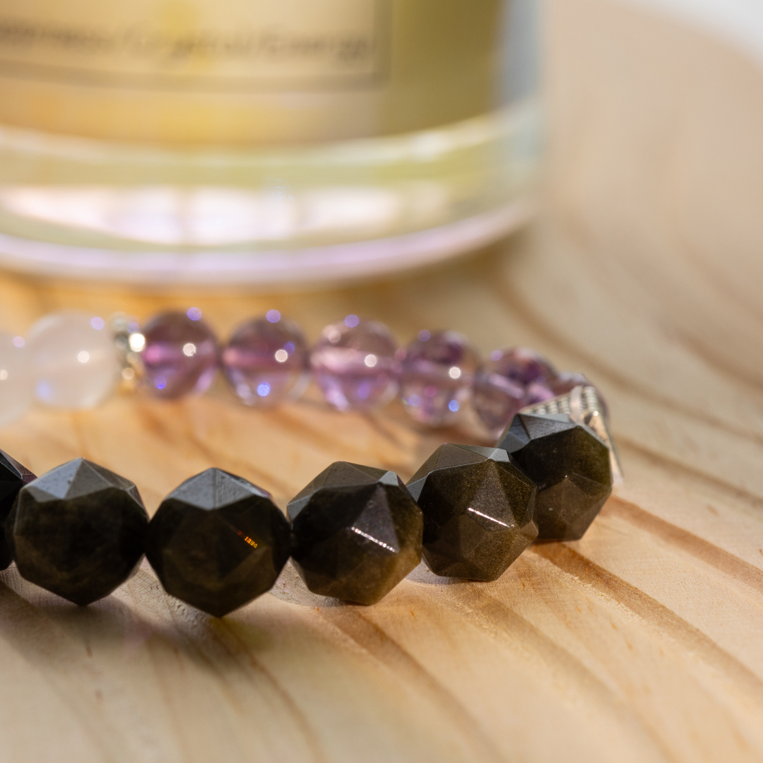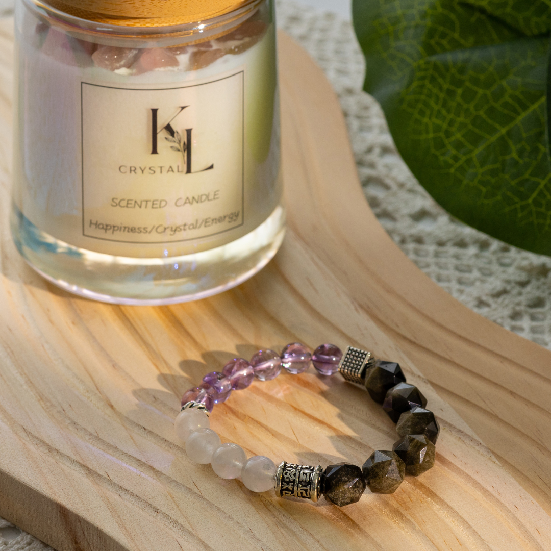 晶石組成:金曜石鑽切面設計|紫水晶|藍月光