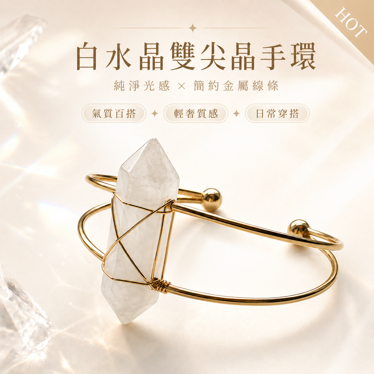 這款以白水晶為主體的手環,打破了傳統開運水晶過於厚重的既定印象。