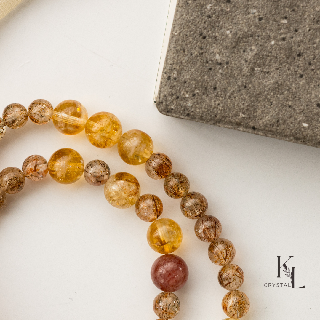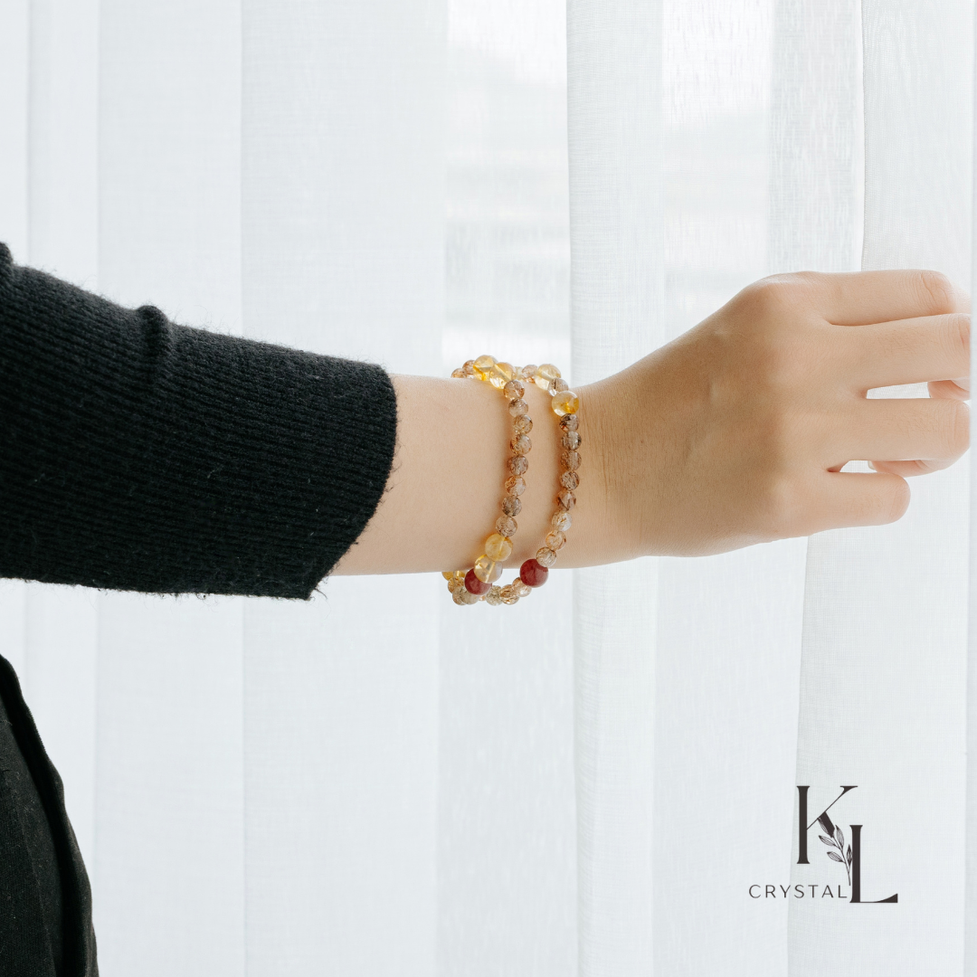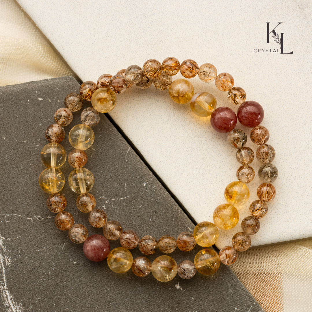 這條黑金超、黃塔晶與星空草莓晶組成的雙圈手鍊,在妳舉手投足間會散發出明確的「結果導向」氣勢,