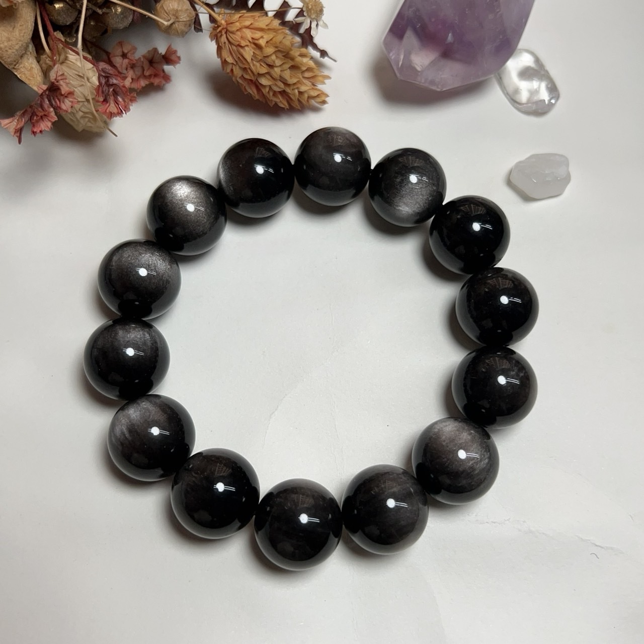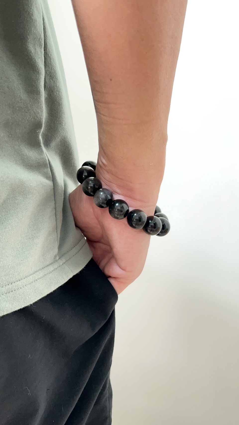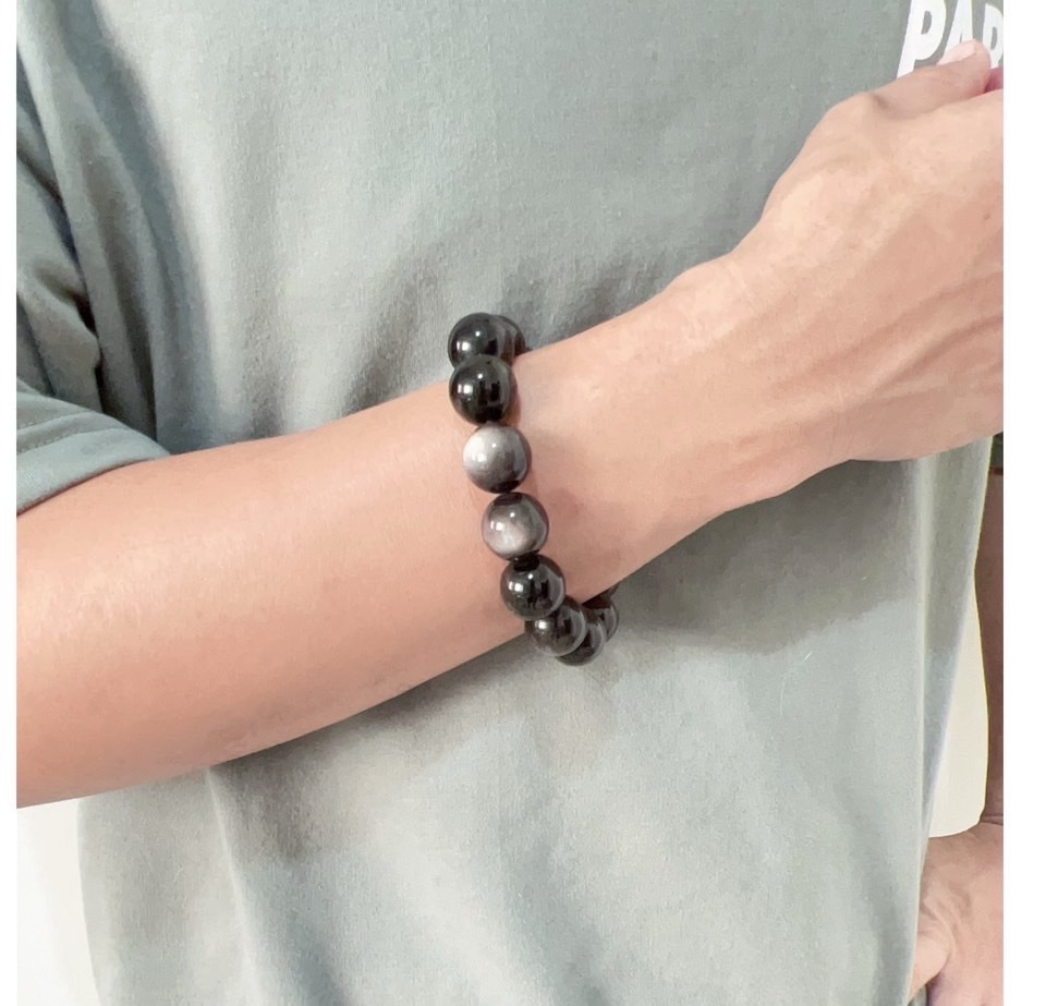 而銀曜石最主要的功能還是吸收並排出體內的負面能量,因此會推薦配戴在能夠輸出能量的右手。
