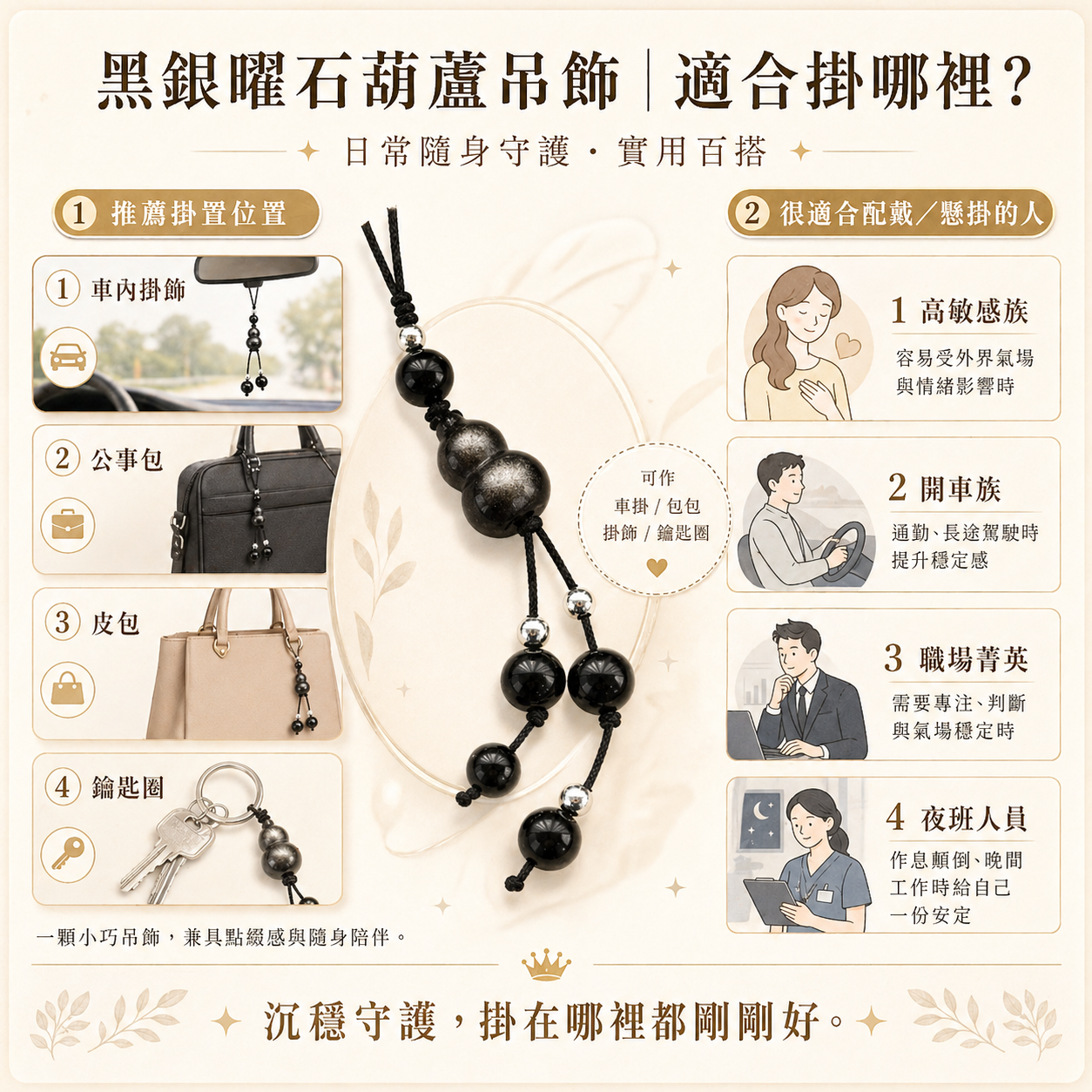 夜班人員: 隨身攜帶避邪小葫蘆,增加氣場保護力。