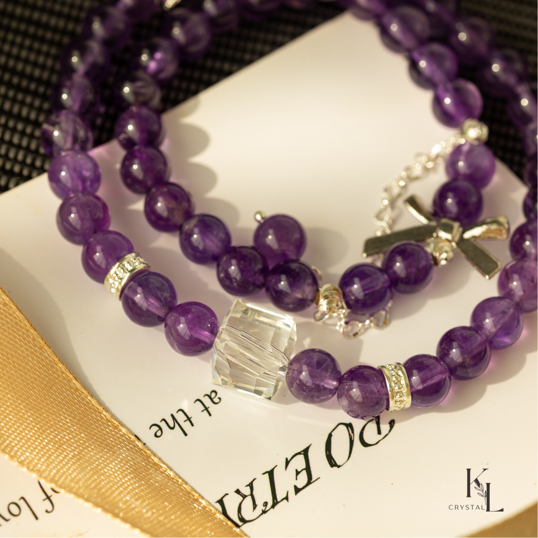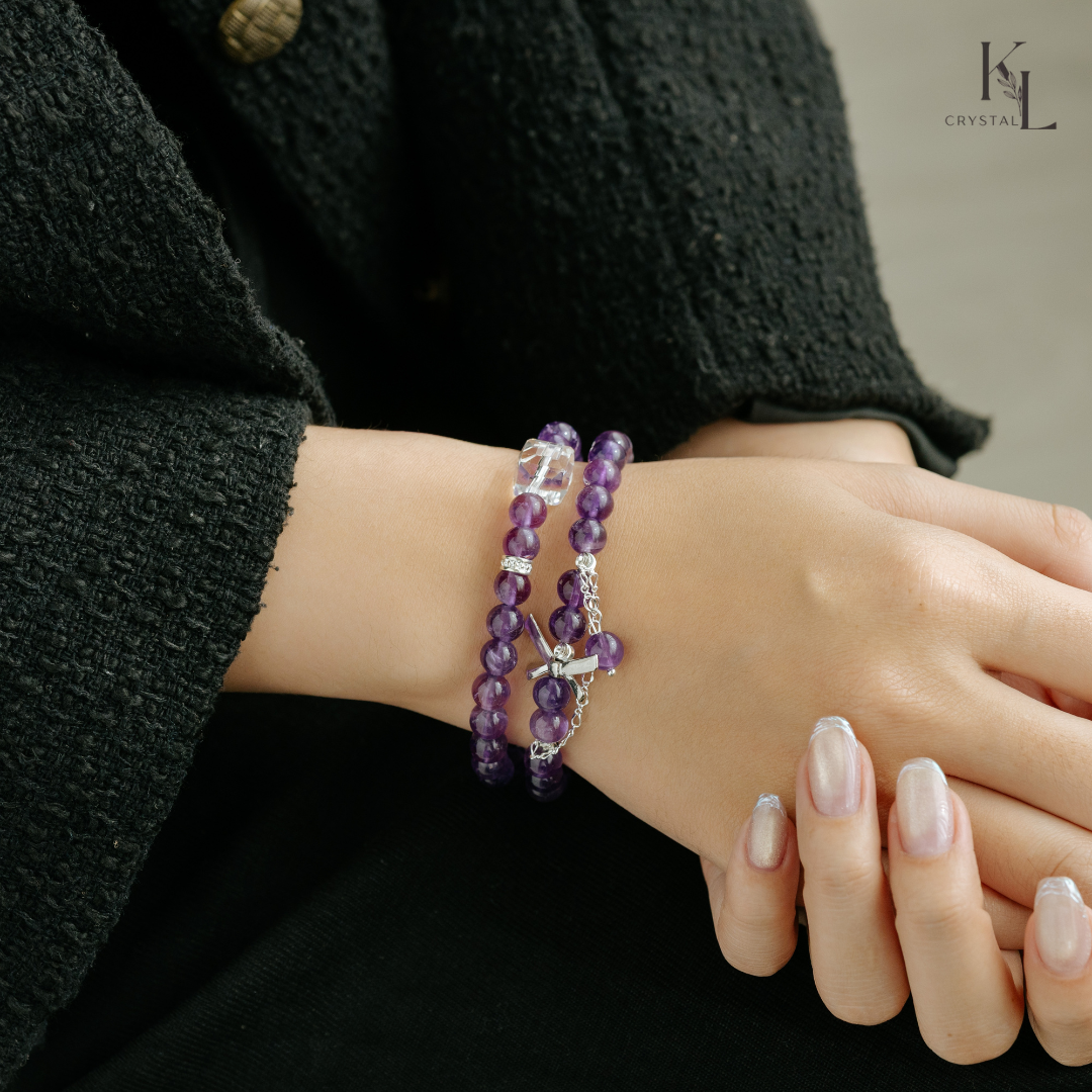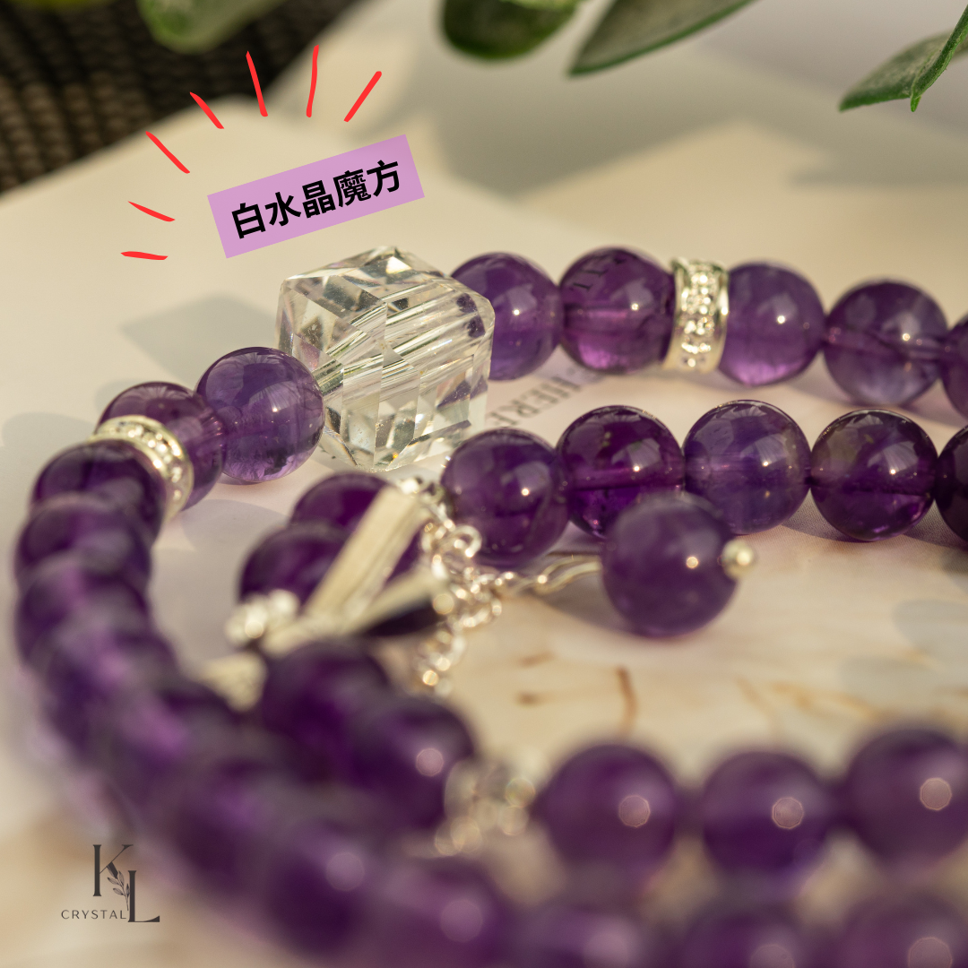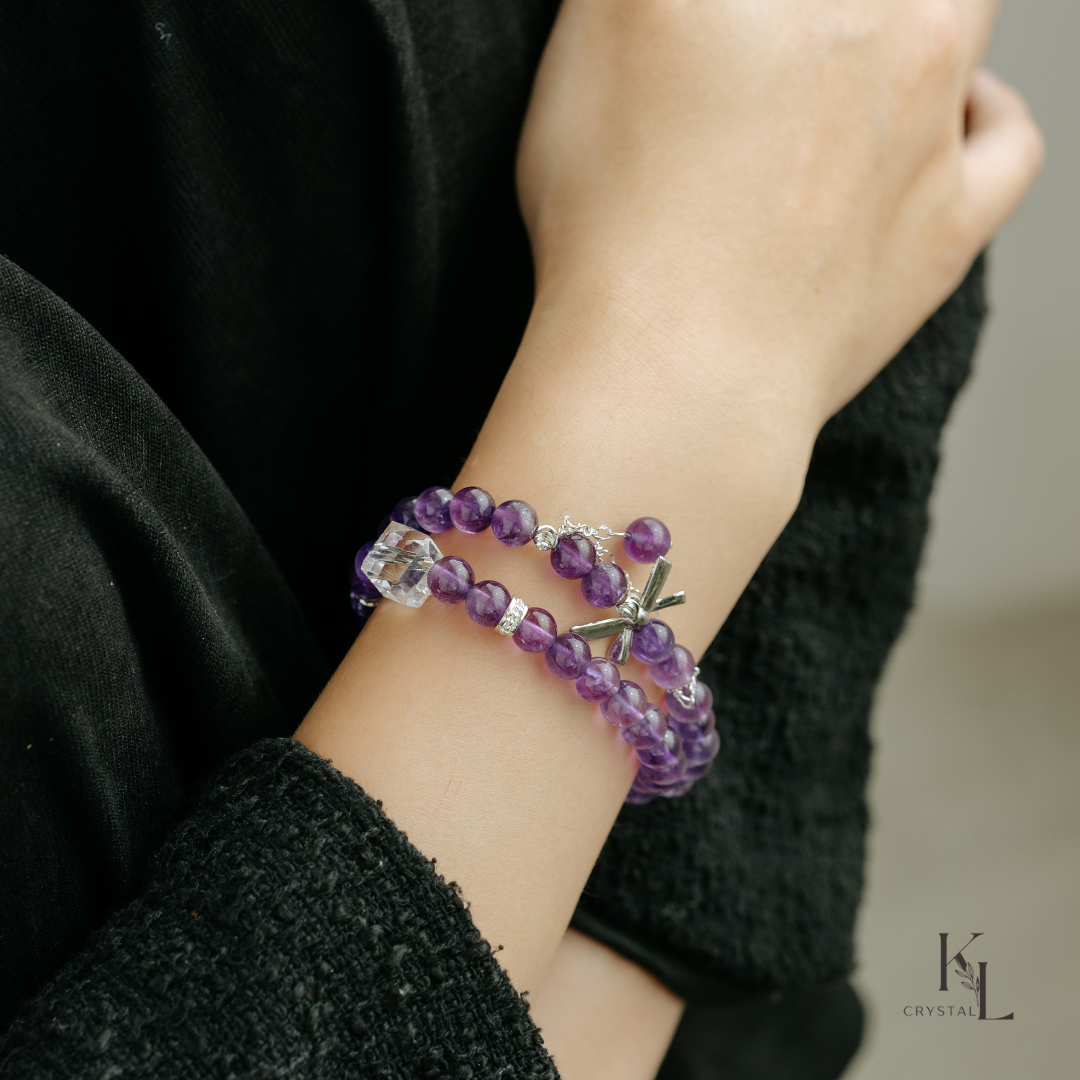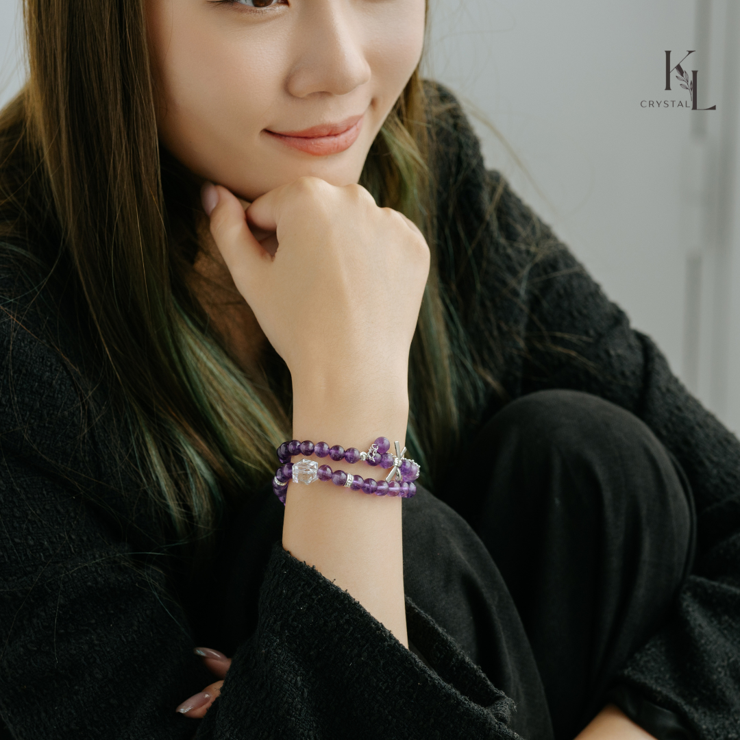 我們將天然紫水晶的溫柔能量,以雙圈繞腕設計柔繞於身