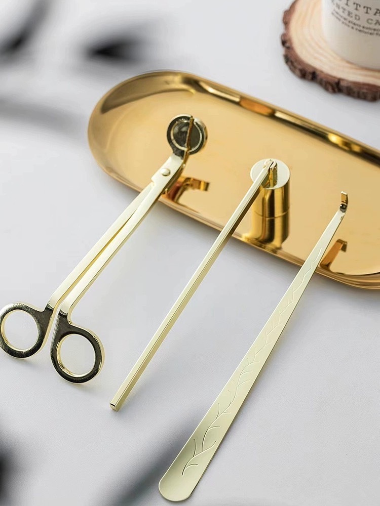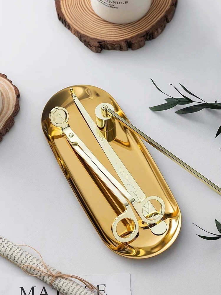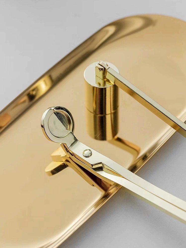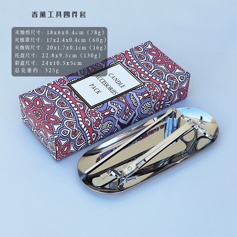 高品質不鏽鋼蠟燭工具五件組 - 滅燭勾 / 燭芯剪 / 滅燭罩 / 金屬托盤