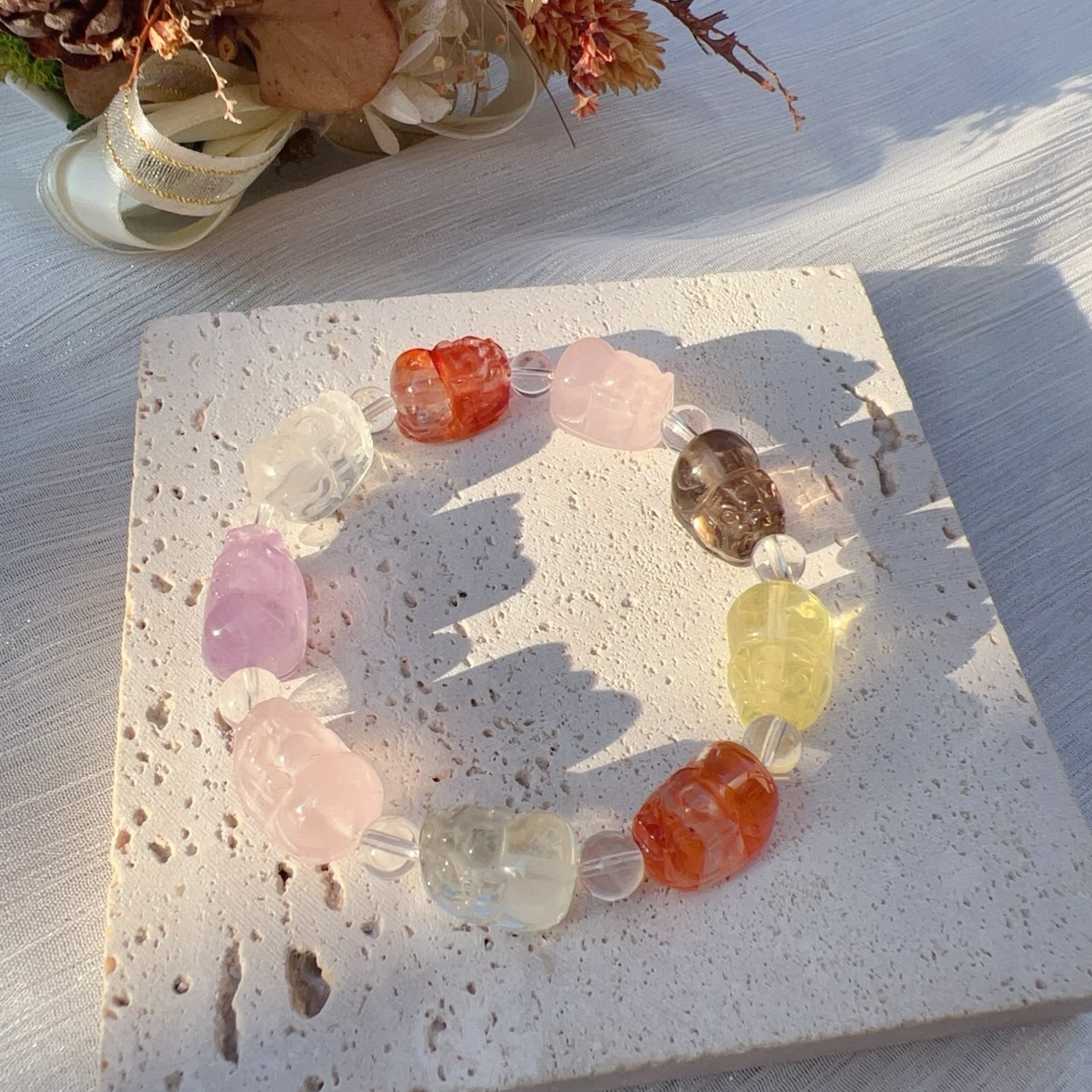 精選天然晶石:黃水晶、紫水晶、紅膠花、白水晶、綠水晶、茶晶、粉晶